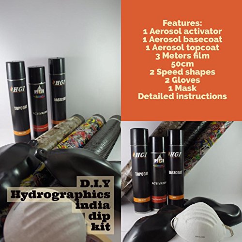 The ink wraps around the material and sticks to it. Then a pre-printed film with the design of choice is placed into a tub of water. DipDemon Premium Blend Activator is recommended for improved performance on all hydrographic films.