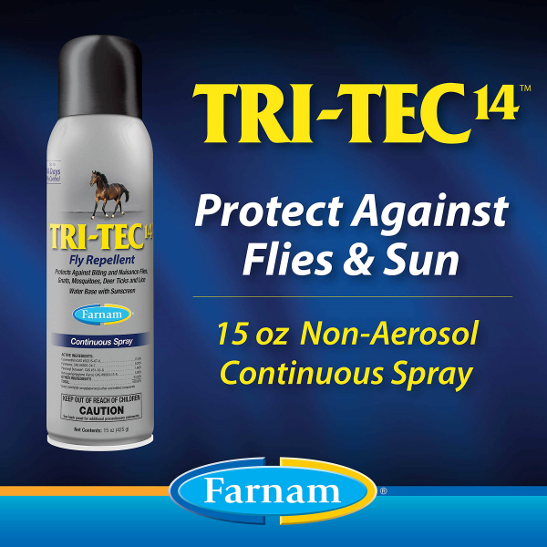 Tri-Tec Spray insecticida 600 ml. This is a very effective fly control spray. Tri-Tec 14 Fly Repellent is a water-based formula that protects your horse against six types of biting and nuisance flies plus gnats mosquitoes lice and deer ticks that may transmit Lyme disease.