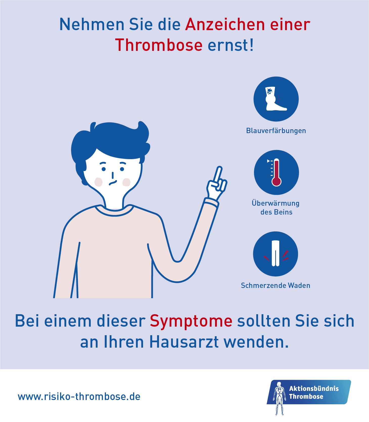 Anzeichen für eine thrombose. Direkt zum Inhalt zur. Hier sind die Symptome jedoch wesentlich eindeutiger. Wichtige Thrombose-Anzeichen sind eine Schwellung Schmerzen und eine rote oder bläuliche Verfärbung der Haut.